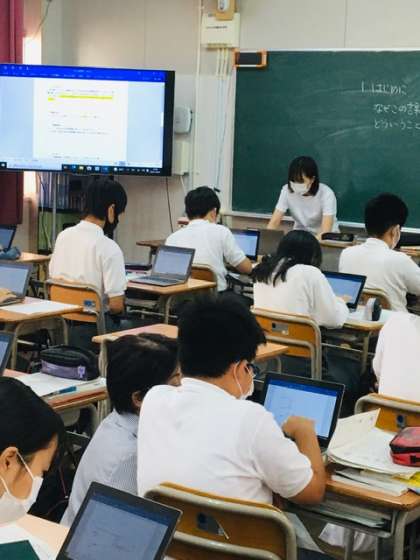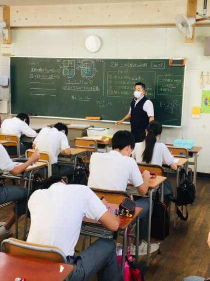 左:1年生国語、中央:2年生社会、右:3年生数学 の様子です。