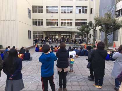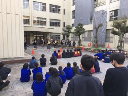 音楽部による恒例の発表会がありました。寒い冬空の中、約20分間中学校が温かい音色で包まれました。