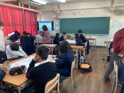2年生では、シリーズで取り組んでいる防災学習で、学校が避難所となった場合の運営をシミュレーションするHUG体験を行いました。