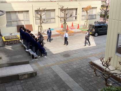 放送による着任式、始業式、対面式のあと、学級写真などの学級活動を行っています。