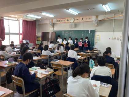 今日は「工夫を話し合い、情景が伝わる朗読をする」をめあてとして、班に分かれて取り組みました。