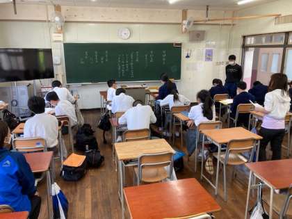 より良い学校にするため、各クラスの代表の委員が集まって意見を出し合っています。