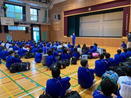 出発式 学校長の話があり、生徒代表から誓いの言葉などがありました。