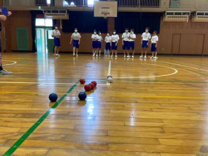 ゲストティーチャーを招いて、障がいについて考える取り組みをし、ボッチャの体験を行いました。