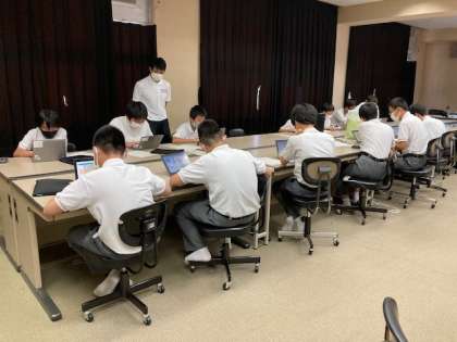 文化祭でも発表するプログラミングに取り組んでいます。今日は、北区役所による部活動支援で、専門家の方に指導していただきました。