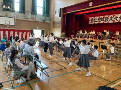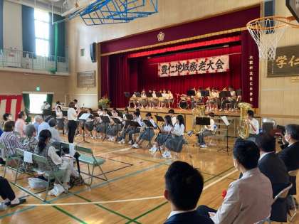 本校音楽部が校区の敬老大会で演奏させていただきました。子どもたちに演奏の機会をいただき、本当にありがとうございました。