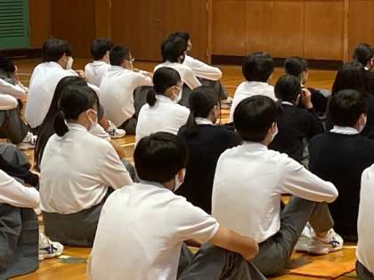 学年朝礼では、残された約半年の中学校生活についての話がありました。