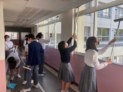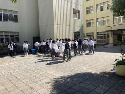 生徒会や美化委員を中心に清掃ボランティアを行いました。今回は30人以上の有志の参加もあり、活気にあふれていました。
