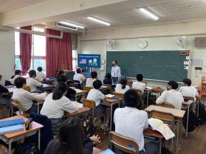 ネイティブスピーカーの先生とともに、「must not」と「don't have to」との違いについて学習しています。