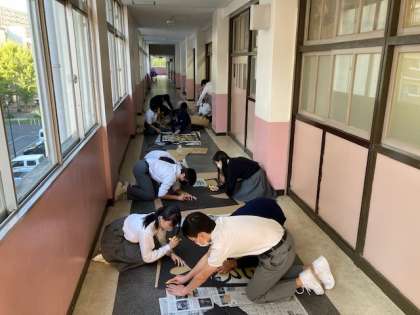 廊下や教室など様々な場所で作業に取り組んでいます。