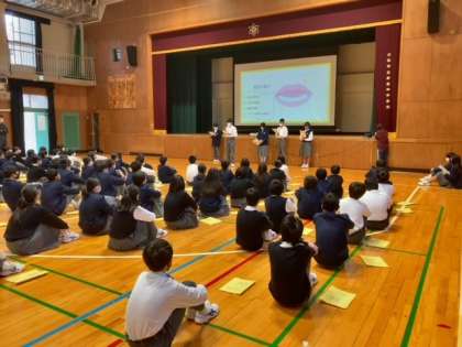食育の一環として、保健委員が「噛むこと」による効果をプレゼンテーションしてくれました。