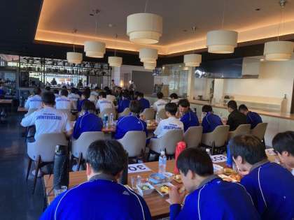 全員そろって朝食をいただいています。パンはおかわり自由です。