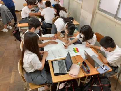 インターネットなどを使って班ごとに様々な国の様子をまとめています。