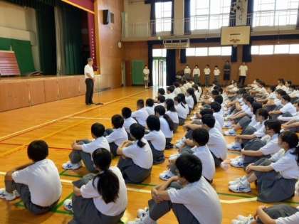 今日は北区の前田区長に来校していただき、全校生徒に向けて夢の実現をサポートする取り組みについての話をしていただきました。