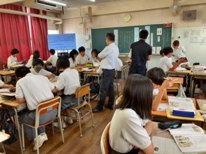 本校は、今年度、文部科学省「道徳教育の抜本的改善・充実に係る支援事業」の道徳教育推進拠点校なっています。その取り組みの中で、公開授業と研究協議を行いました。教育委員会や近隣の小中学校の先生に参加いただき、有意義な研修となりました。