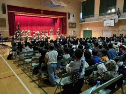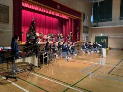 豊仁小学校で行われたクリスマス会に、本校音楽部が演奏の機会をいただきました。小学生のみなさん、しっかり聴いてくれてありがとうございました。