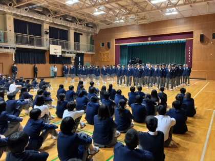 4時間目に全校生徒が体育館に集まって、「3年生を送る会」を実施しました。