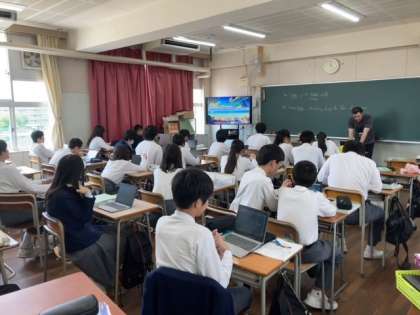 写真下の英語では、ネイティブスピーカーの先生による文法の演習を生徒端末アプリを使って行っています。