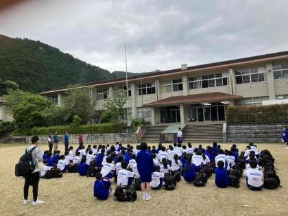 吉野宮滝野外学校に到着しました。 入所式を行い、活動が開始されます。