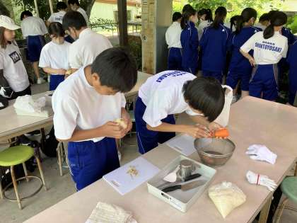 アウトドアクッキングでは、それぞれの役割に分かれて作業を行います。