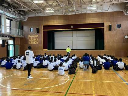 無事、学校に到着しました。 荷物の確認等が終わり次第、到着式を行います。