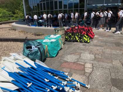 日本真ん中センターに到着して、ラフティングの準備を始めています。