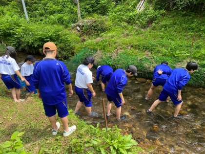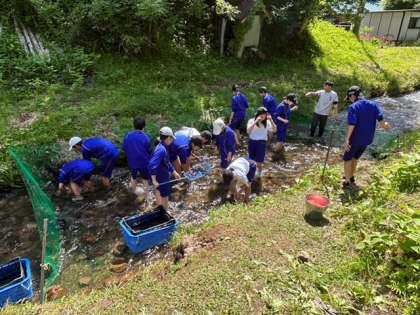 魚つかみ体験の様子です。