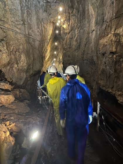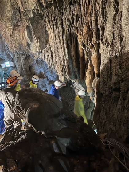 ケイビング班が鍾乳洞に入りました。