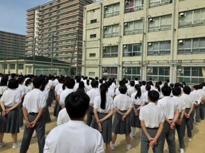 学校長の話に続いて、生徒会から昼休みの放送の新企画について説明がありました。