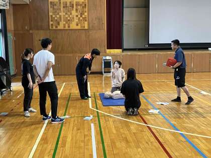 放課後に消防隊と救急隊を講師に招き、教職員研修として救急救命講習を行いました。