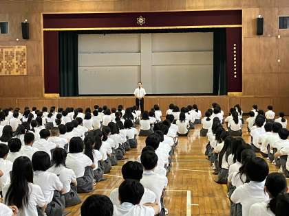 学校長、生徒指導主事、養護教諭の話の後、バドミントン部の表彰がありました。