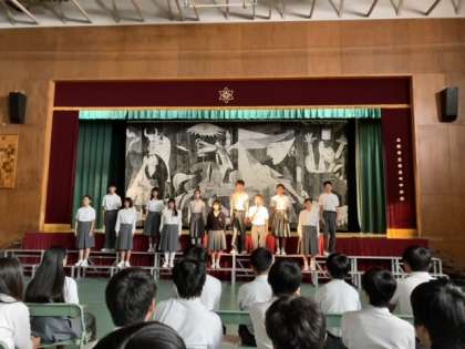 ピカソの「ゲルニカ」を通して平和についての思いを発表しました。