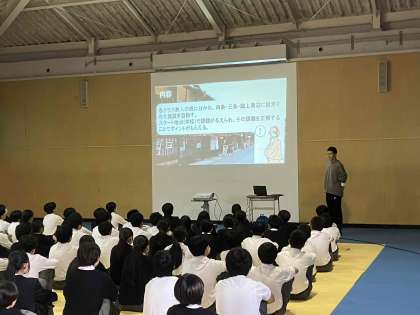 先生から「各課題をクリアするには班員での協力が大切」と話がありました。