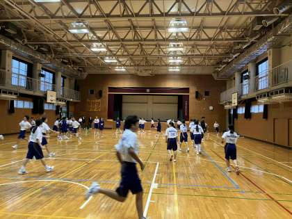 まもなく長距離走の授業が始まるということで、今日はそのウォーミングアップを兼ねた授業となっています。