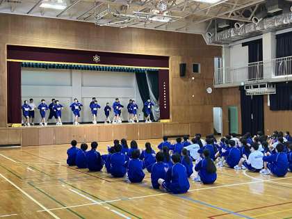 2年生ではダンスの発表を行いました。学年の先生方も見守る中、笑顔で踊っていました。