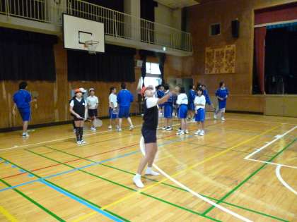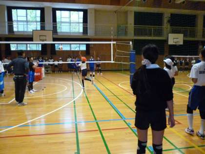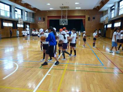 写真は、バスケットボール部、バレーボール部、バドミントン部の体験の様子です。