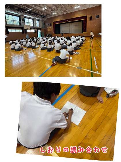 3年生は体育館でしおりの読み合わせをしていました。