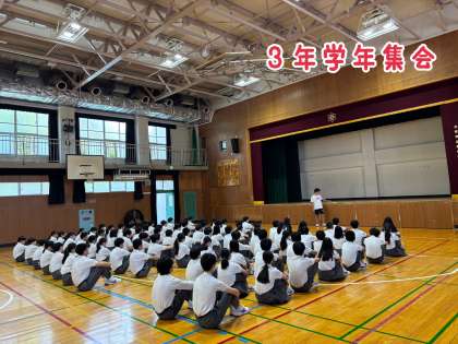 本校では、月曜日 全校集会、水曜日 1年学年集会、木曜日 2年学年集会、金曜日 3年学年集会 を体育館で行っています。