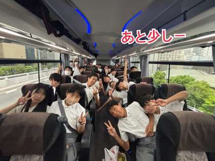 バスは予定通り進んでいます。 18:00前に学校に到着予定です。 到着式後の解散となります。