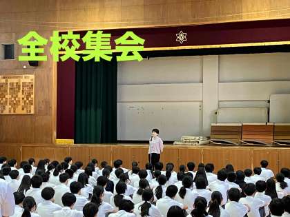 それぞれの役割を全うすることはもちろんですが、切り替えができていた姿は立派であり、「人が作る 人を思う 修学旅行」というテーマを体現できた修学旅行であったとのことでした。2年生は一泊移住を通して学びがあり、学級代表を中心に活動しています。1年生もこれからの学校生活を通してさまざまな学びを得て、よりよい学校生活を過ごすことができるよう、1人ずつ意識をしようというお話がありました。