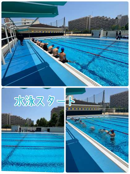 入水前に、体育科の教諭からさまざまな注意がありました。