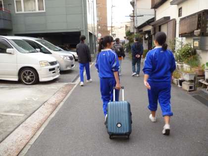 大阪市内に大地震が発生したという設定で、避難所開設と住民同士の