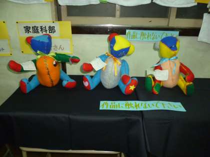 家庭科部の作品と家庭科の授業での3年生の作品を展示しました。