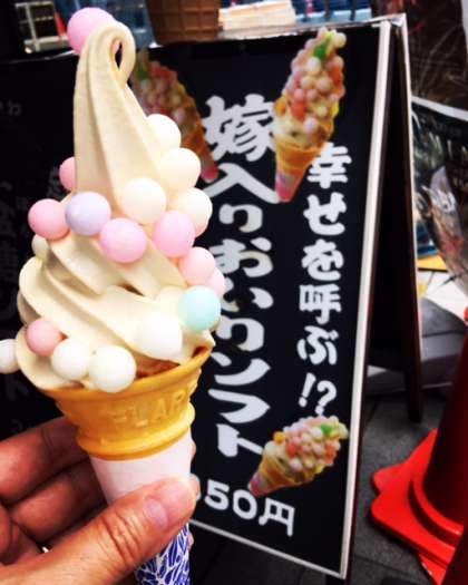 昼食後、金比羅さんの参道でお土産を買いました。おいりソフトも美味しくいただきました!