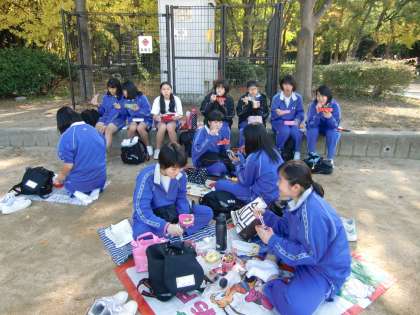 タブレット端子を使い、班別で協力して課題に取り組み、大阪城公園を目指しました。また、公共交通機関を利用したので、マナーを守る大切さも学習しました。
