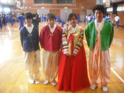 の文化に触れよう」というテーマで、韓国・朝鮮の衣装であるチマチョゴリ