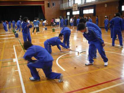 ものを落とさないようにける遊び)やペンイ(朝鮮のコマ)を体験しました。