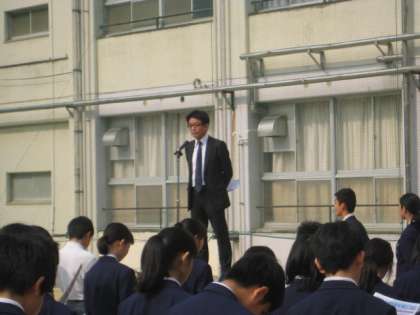 5月1日(月)、全校集会の時間を利用して、大淀警察署 少年係の森田さんから非行防止を目的に講話をしていただきました。