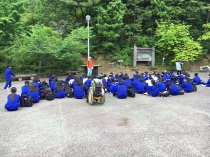 すべての活動を終え、退所式を行ないました。夜は雨が降りましたが、活動中は、天候にも恵まれ、思い出に残る一泊移住でした。