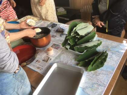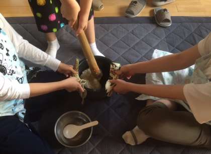 晩ごはんの用意です。ほうばご飯や、五平餅作りをしていました。
